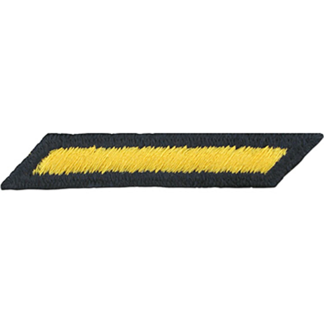 Enlisted hashmarks are centered on the outside of the left sleeve 4 in. from the bottom. Place the service stripe at a 45 degree angle with the lower end toward the inside seam of the sleeve. For each additional period of 3 years honorable service, another service stripe is added above and parallel to the first stripe, with a 1/16 in. space between the stripes; male.